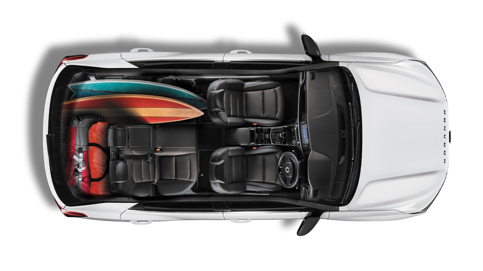 A useful 'luggage board' provides a hidden compartment like the luggage hold on a plane. Golf clubs? No Problem. Suitcases? Bring them on. You can even extend the space by folding the 2nd row to add a surf board.